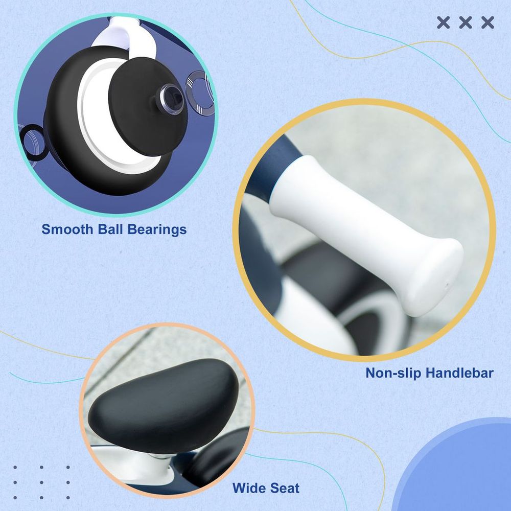 AIYAPLAY Baby Balance Bike, Children Bike Adjustable Seat, Wide Wheels - Blue